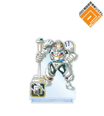 ジャスティス ハンコックのイラストを新たなタッチで魅力的に表現し、BIGなアクリルスタンドに仕上げました。
