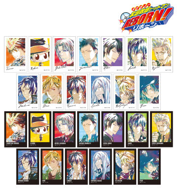 沢田 綱吉 、リボーン、獄寺 隼人(10年後)、山本 武(10年後)、雲雀 恭弥(10年後)、大人ランボ、笹川 了平(10年後)、六道 骸(10年後)、ディーノ(10年後)、XANXUS (10年後)、スペルビ・スクアーロ(10年後)、ベルフェゴール(10年後)、フランのイラストを新たなタッチで魅力的に表現し、イラストカードに仕上げました。