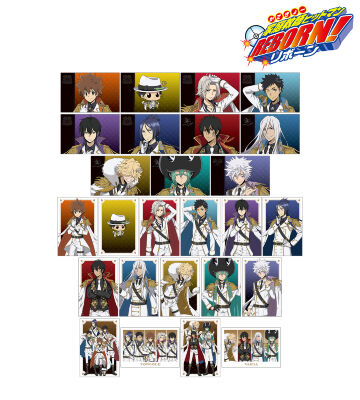 沢田 綱吉、リボーン、獄寺 隼人、山本 武、雲雀 恭弥、六道 骸(10年後)、XANXUS(10年後)、スペルビ・スクアーロ(10年後)、ベルフェゴール(10年後)、フラン、白蘭の描き下ろしイラストをポストカードに仕上げました。