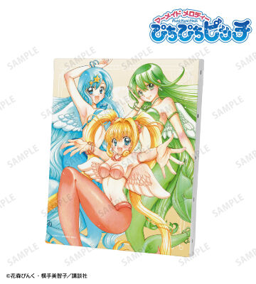 商品名:ぴちぴちピッチ 花森ぴんく先生 描き下ろし 集合 羽を纏ったマーメイドver. キャンバスボード