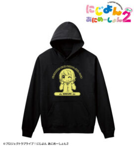 近江 彼方のイラスト、メンバーの名前、虹ヶ咲学園スクールアイドル同好会の文字をパーカーに仕上げました。