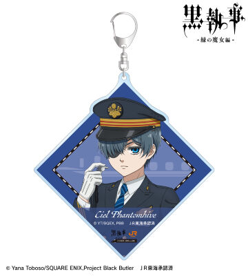 アニメ『黒執事 -緑の魔女編-』×「推し旅/JR東海」のコラボレーションアイテム「描き下ろし シエル・ファントムハイヴ 駅員ver. BIGアクリルキーホルダー」の登場です。シエル・ファントムハイヴの描き下ろしイラストをBIGなアクリルキーホルダーに仕上げました。