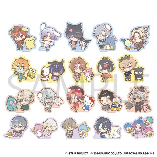 『18TRIP』×サンリオキャラクターズのコラボイラストを使用したぺたコレクションが登場です! (C)18TRIP PROJECT (C) 2026 SANRIO CO., LTD. APPROVAL NO. L664141サイズ:約8×8cm以内